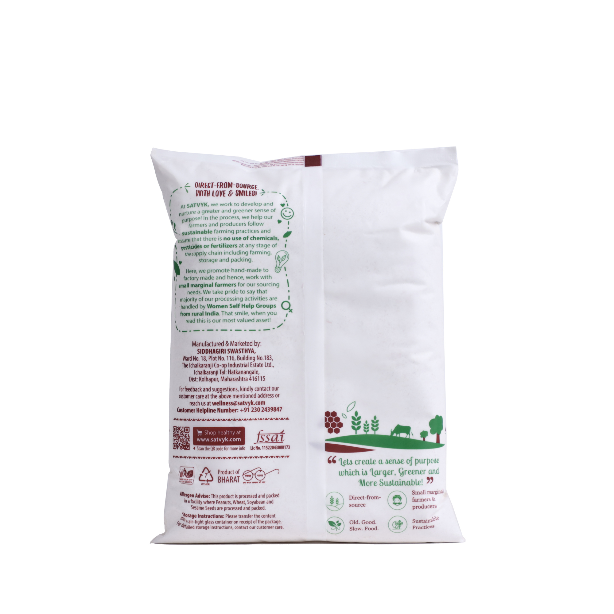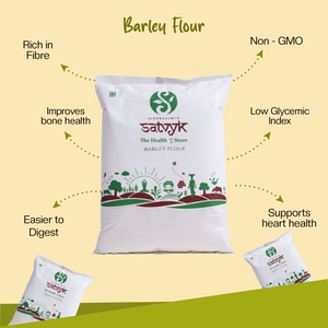 Satvyk’s Organic Barley Flour is a wholesome and nutrient-rich alternative to refined flours, made from organically cultivated barley that follows traditional farming methods from sowing to harvesting. The Desi Indian variety of barley seeds is nurtured using organic sprays like Jeevamrut and Dashaparni Ark to naturally protect crops from pests. Once harvested, the barley is carefully separated from its husk using ancient winnowing techniques, ensuring purity. The grains are then sun-dried and stone-ground at a very low RPM (Rotations per Minute), preventing heat generation and preserving their natural nutrients. This is a great addition to your daily diet.