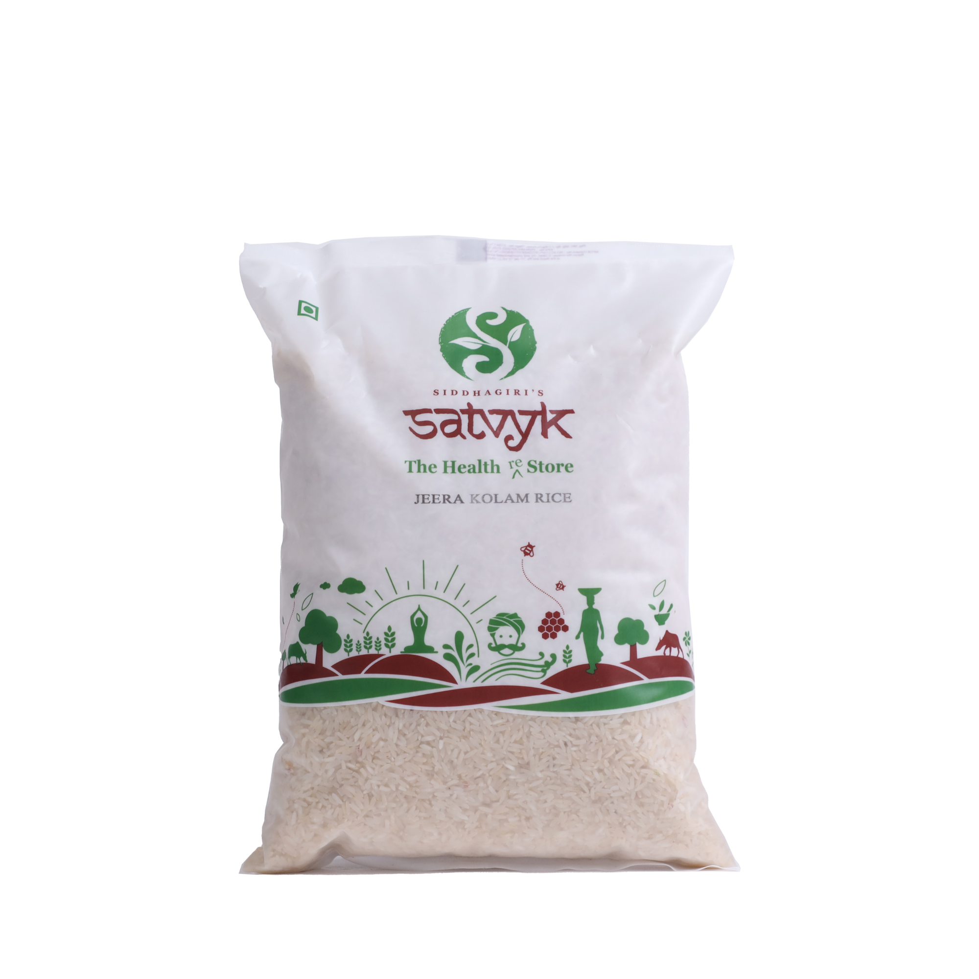 Unlike long-grain rice, Jeera Kolam has smaller, plumper grains that cook to a soft, fluffy consistency. It absorbs flavors beautifully, making it ideal for dal, curries, and simple home-cooked meals.