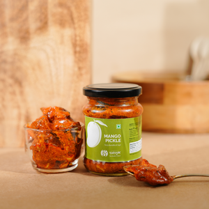 A traditional summer delight, made with raw mangoes, mustard oil, and a robust mix of spices. This recipe is a celebration of Indian pickling heritage – bold, sharp, and deeply satisfying with almost any Indian meal.