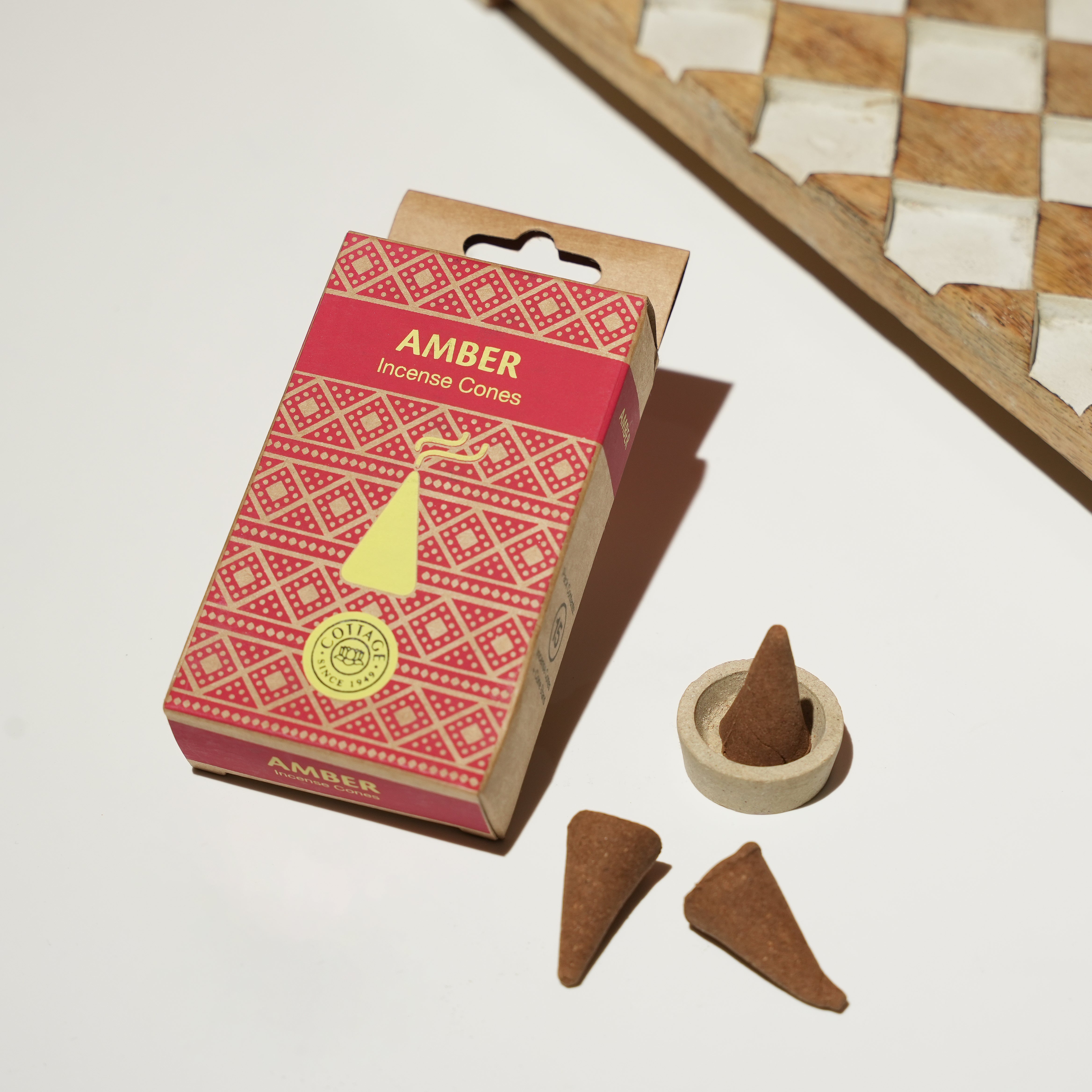 Natural Amber Incense Cones | Warm & Resinous Scent | Enhances Spiritual Energy | 15 Cones | Ideal for Prayer & Mood Upliftment