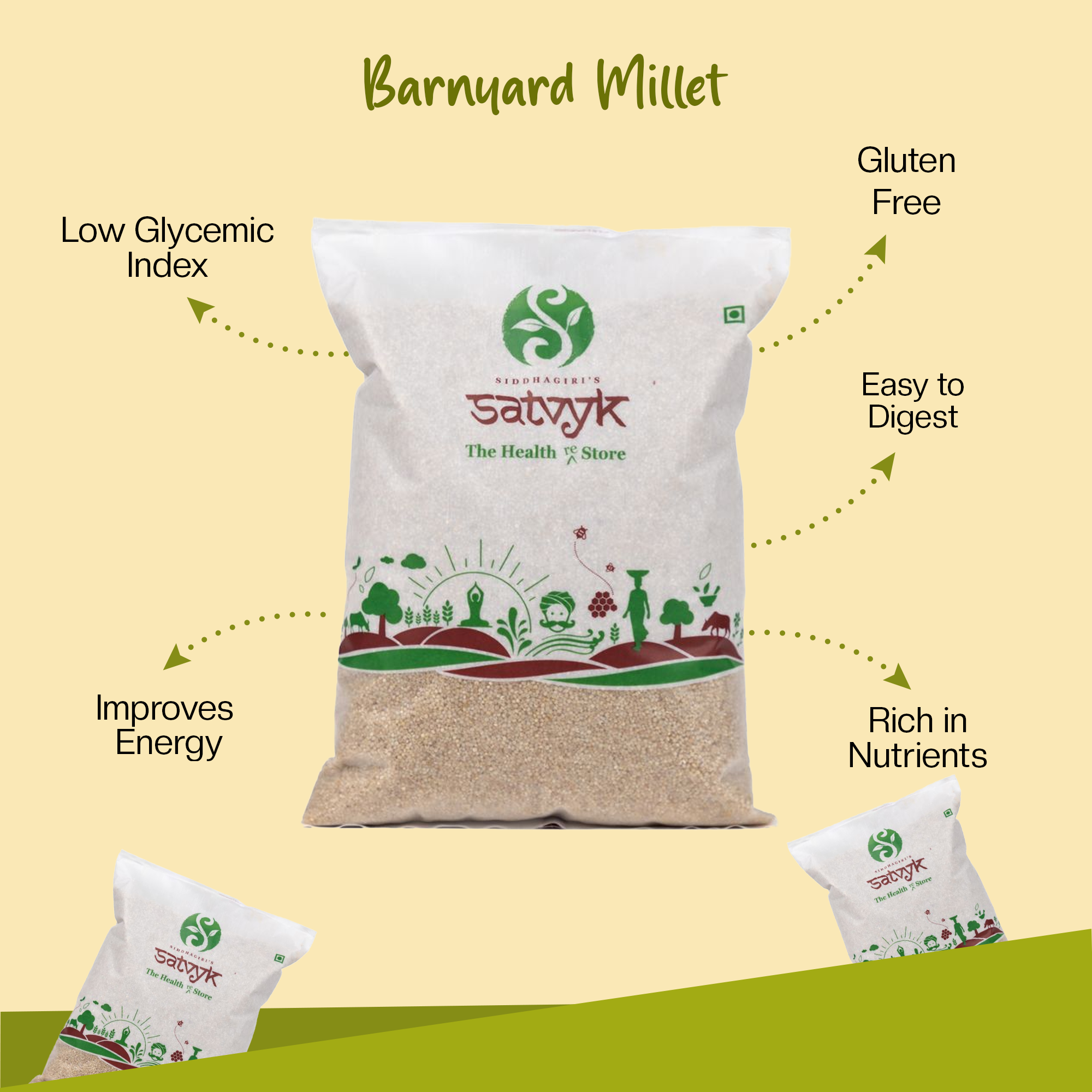 Satvyk Barnyard Millet is a light and healthy grain, perfect for everyday meals. It is rich in fiber, protein, and iron, supporting digestion and keeping you energized. With its low glycemic index, it’s a smart choice for those managing blood sugar levels. This gluten-free millet is easy to cook and can be used in dishes like upma, khichdi, porridge, or as a rice substitute. Make Satvyk Barnyard Millet a part of your diet for a healthy lifestyle.