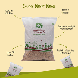 Emmer Wheat, also known as Khapli Gehu, is an ancient grain packed with rich nutrients and health benefits. Unlike modern wheat, it is naturally low in gluten, making it easier to digest while being an excellent source of fiber, protein, and essential minerals. Its high fiber content supports gut health, aids digestion, and helps regulate blood sugar levels. At Satvyk, we bring you pure, traditionally grown Emmer Wheat so that you get only organic and pure products.