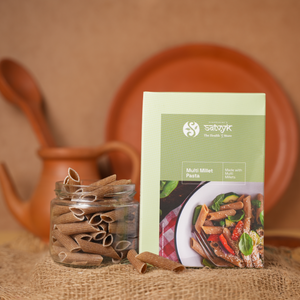 A nutritious blend of millets turned into classic penne pasta—perfect for soaking up your favorite sauces. It’s tasty, filling, and completely free from refined flour and artificial additives.