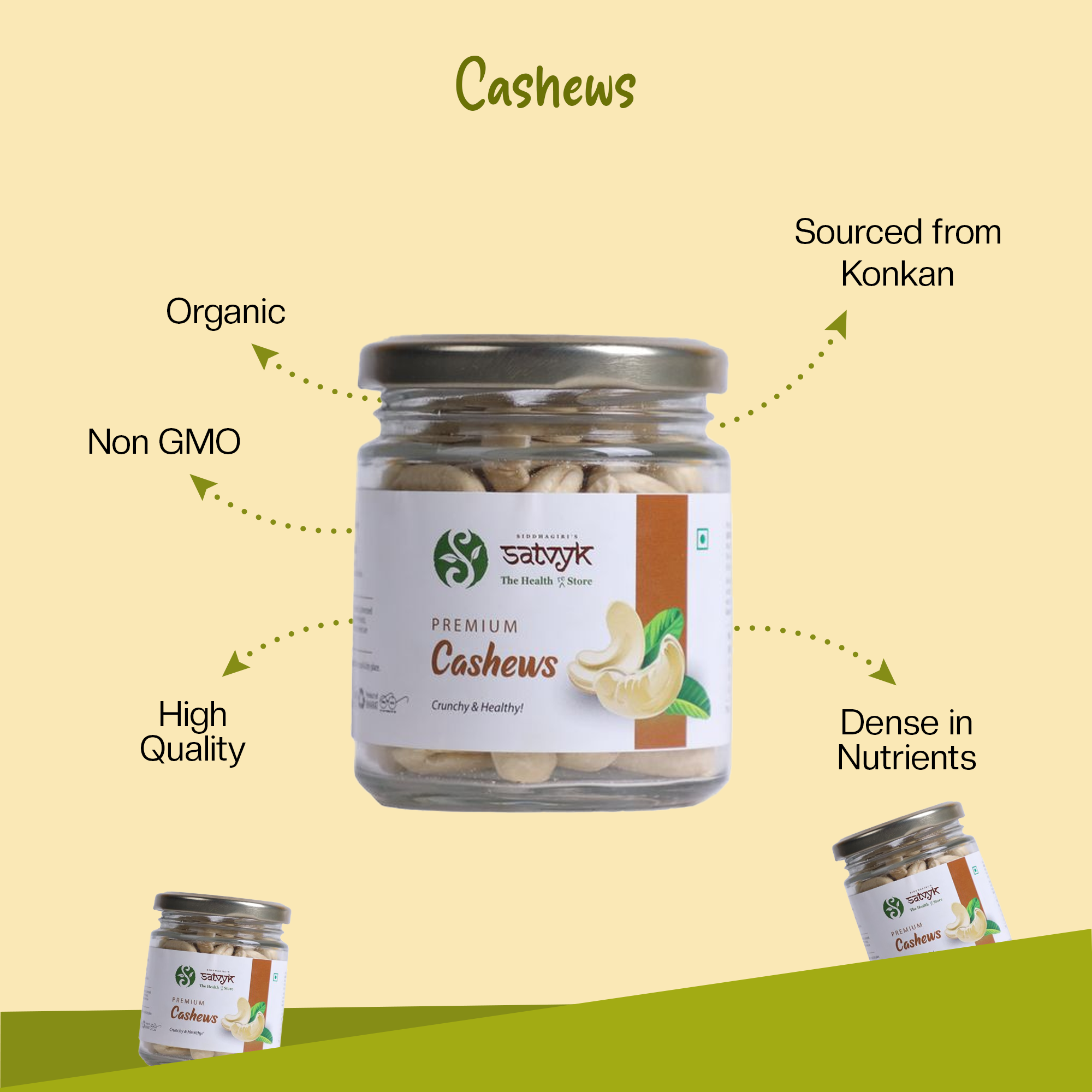 Satvyk Cashews are sourced from the pristine region of Konkan, renowned for its rich agricultural heritage. These cashews are completely free from chemical pesticides, ensuring a pure and natural product. Carefully handpicked and minimally processed using traditional methods, Satvyk Cashews retain their authentic flavor, natural nutrients, and wholesome goodness. Perfect for snacking or cooking, they bring a touch of purity and quality to your kitchen while supporting sustainable and eco-friendly farming practices.
