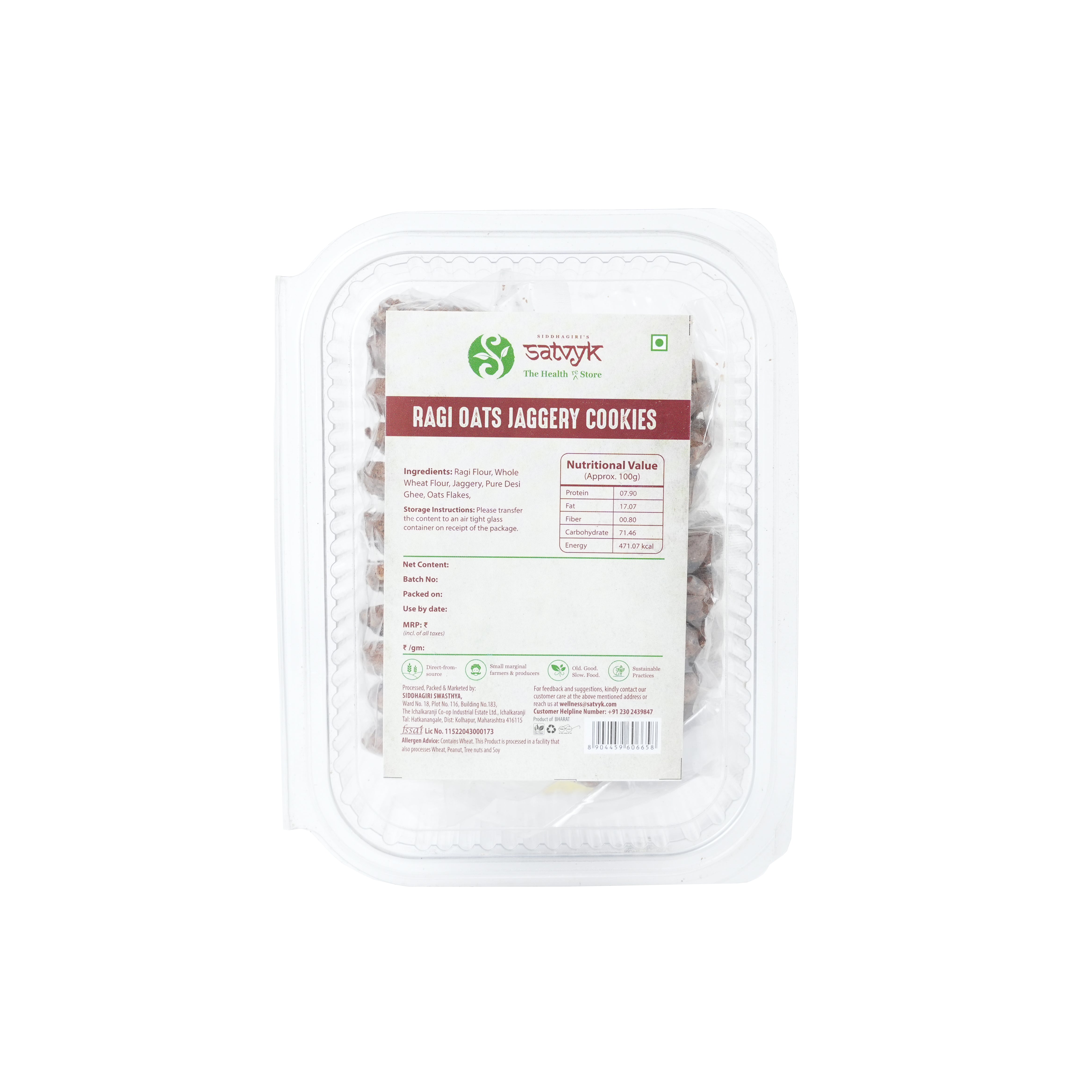 Oats & Ragi Cookies made with fiber-rich Ragi Flour, Whole Wheat Flour, and wholesome Oats Flakes for a nourishing crunch.
