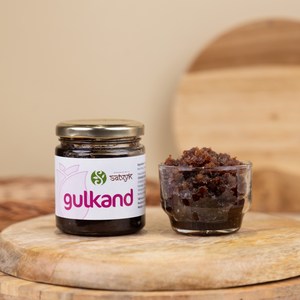 Made with sun-dried indigenous rose petals and natural sweeteners, this Gulkand is prepared the traditional way—slowly matured to preserve its natural essence and health benefits.