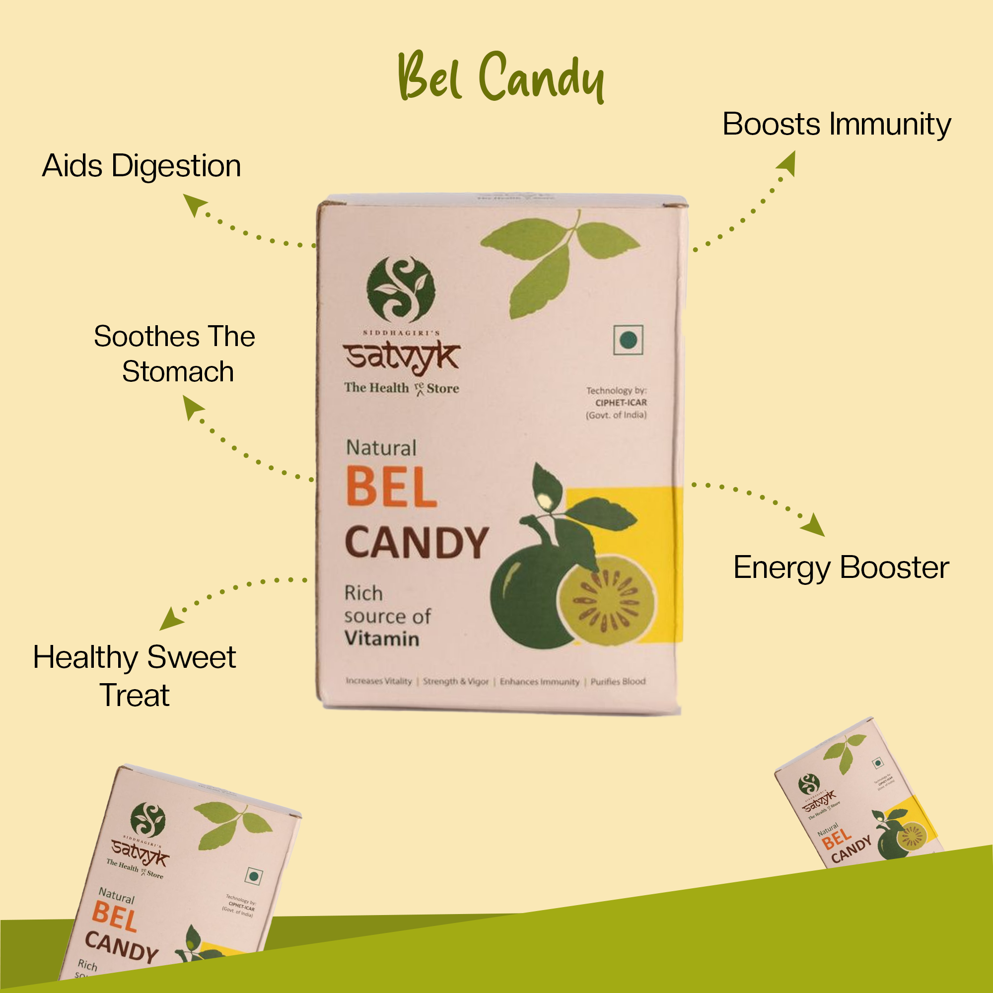 Indulge in the sweetness of the locally grown and Sun-dried Bel Candy, which has sweet and tangy flavour. These are sweetened with Khandsari, making it a healthier alternative to sugary candies. Known for its unique flavor and numerous health benefits, Bel Candy is not only delicious but also packed with nutrients. It aids digestion, boosts immunity, and provides a cooling effect. Whether you're craving a sweet snack or looking for a healthier alternative, Bel Candy is the perfect choice for everyone.