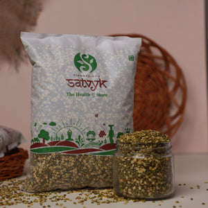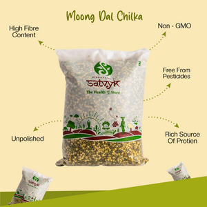 Our Moong Dal is grown locally in the dry lands of Uttar Pradesh and Rajasthan and prepared by stone grounding and hand-pounding the legume, keeping the traditional farming practices intact. Infact, the seeds used are of indigenous variety ensuring the product is truly organic. To keep the pest and insects at bay, we spray the crop with Jeevamrut, Dashaparni Ark and other organic sprays also ensuring that no harsh chemical or synthetic pesticides are used. Our Moong Dal take almost 1.5X the time taken by its hybrid counterpart to grow, but it makes it certain that our crop is nutrient dense.