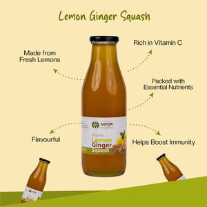 Organic Lemon Ginger Squash, Instant drink| Refreshing Nimbu Adrak Syrup| No preservative, Natural - No additives, Sweetened with raw honey | Lemon ginger concoction