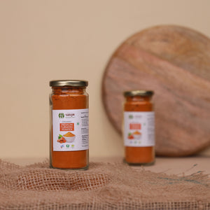 Discover the purity and potency of our Premium Organic Turmeric (Haldi) powder which is sourced from the Turmeric village from Wardha district. Known for its rich aroma and vibrant colour, this Haldi powder has a high Curcumin content. Our Haldi powder is super rich in Antioxidants, has immunity boosting properties and even anti-inflammatory. This Golden Spice is an absolute must-have in your Masala box.