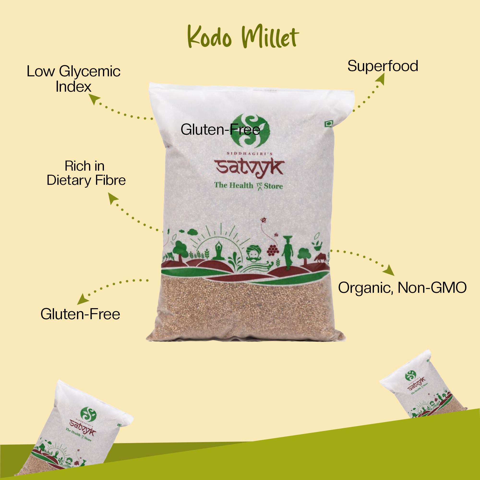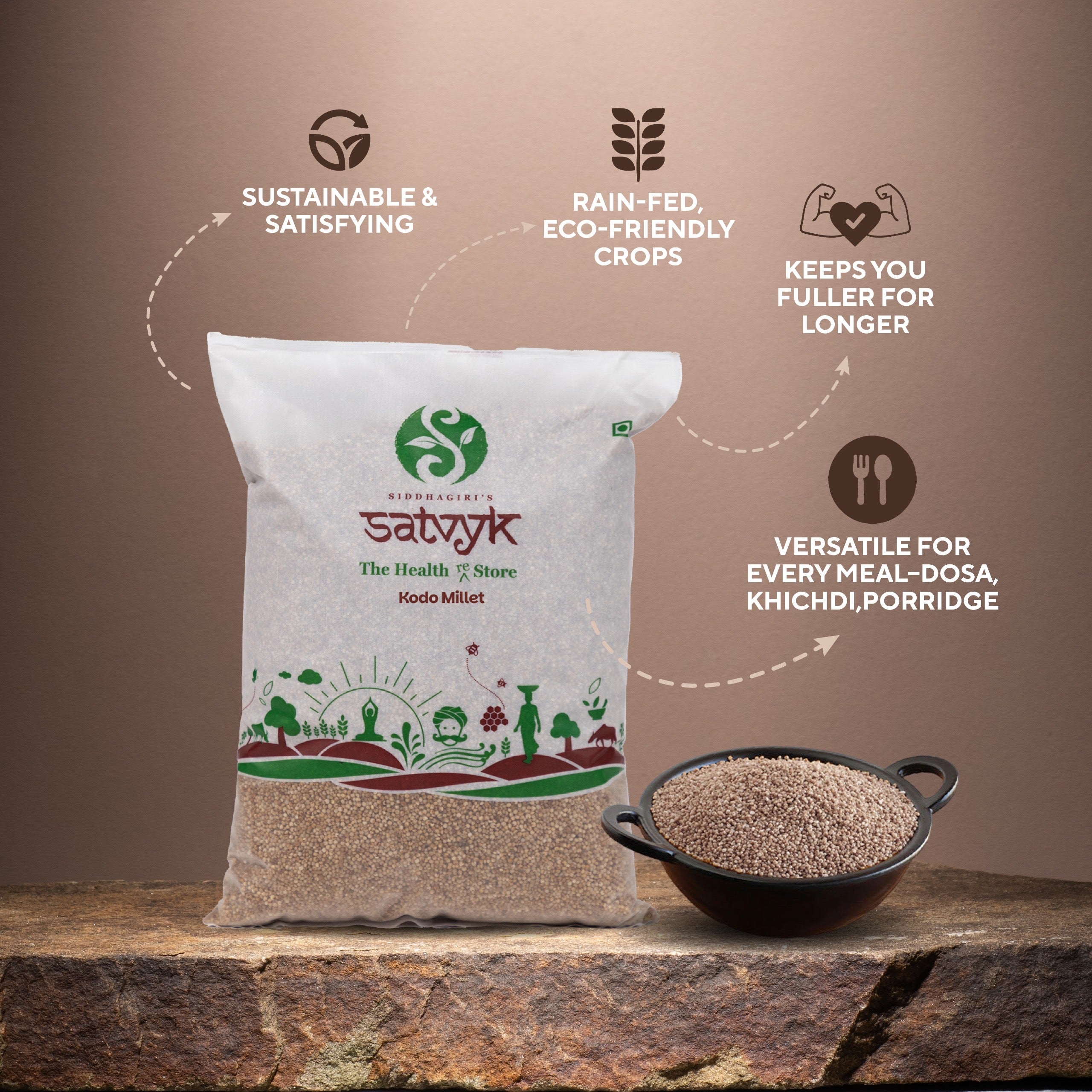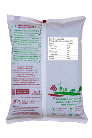 Satvyk’s Organic Kodo Millet is a nutrient-rich and easily digestible grain, packed with phytochemicals and antioxidants that help prevent major lifestyle diseases. It is an excellent choice for weight loss enthusiasts, offering a guilt-free alternative to rice. Known for its health benefits, Kodo Millet has been shown to reduce knee and joint pain and support hormonal balance, helping regularize menstruation in women. Versatile and wholesome, it can be cooked like rice or used in various healthy recipes, making it a perfect addition to a balanced diet.