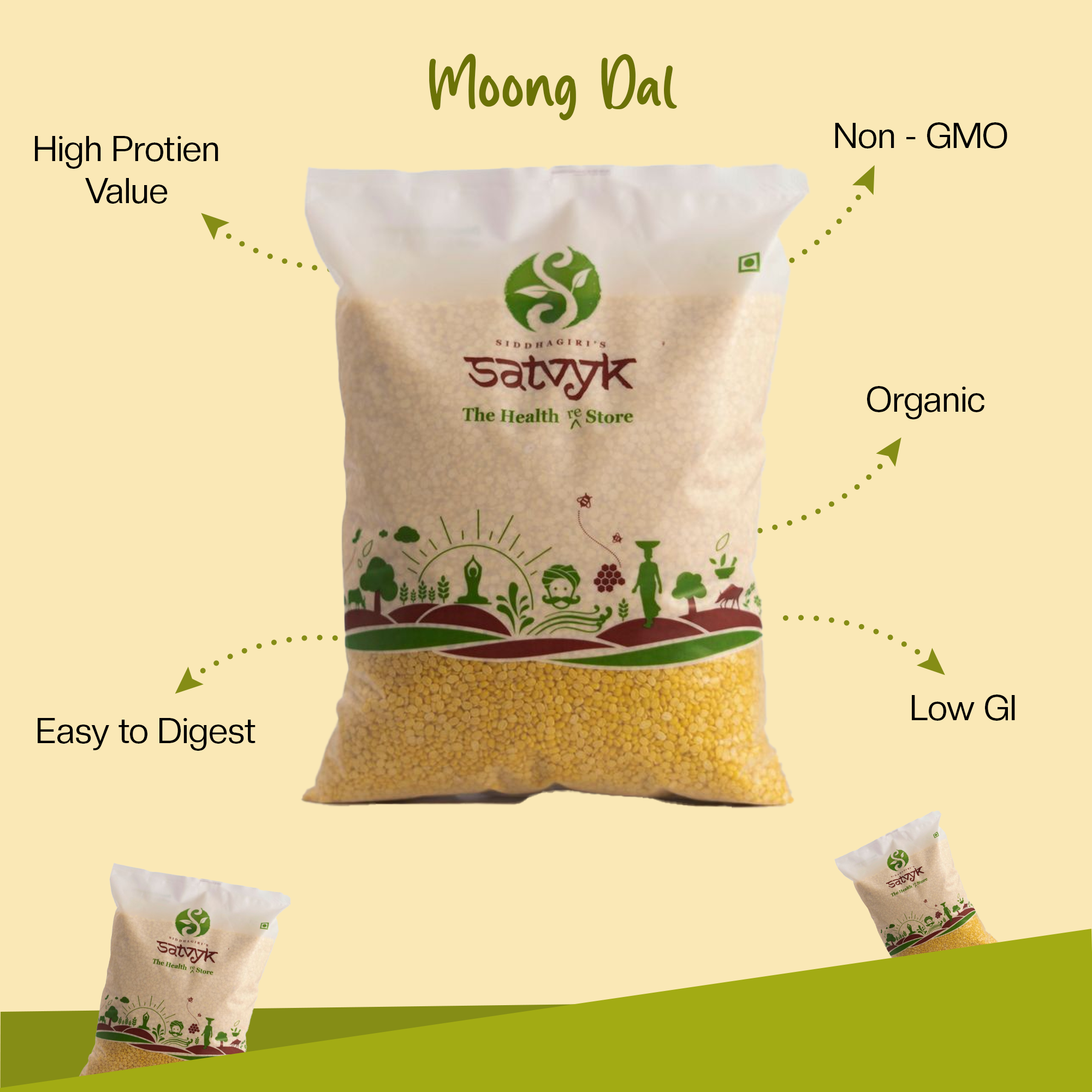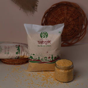 Satvyk's Organic Unpolished Yellow Moong Dal is your go-to ingredient for a wholesome, nutritious meal. This vibrant pulse is light, easy to digest, and free from any artificial processing. Rich in proteins, fiber, vitamins, and minerals, it is a great inclusion to your diet. Whether you’re cooking a comforting soup, a flavorful curry, a fresh salad or even plain or tadka dal, this dal adds that perfect touch of healthy goodness. Add our Organic Unpolished Yellow Moong Dal for a pure, delicious, and energizing meal every time.