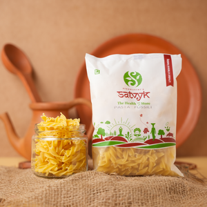 Satvyk’s Whole Wheat Fusili Pasta is made from 100% organic whole wheat, ensuring a nutritious, fiber-rich, and chemical-free alternative to regular pasta.Its firm texture and delicious taste make it perfect for classic pasta dishes, healthy salads. Free from artificial additives and preservatives, Satvyk’s Whole Wheat Fusili Pasta is the perfect guilt-free indulgence for a wholesome and tasty meal.